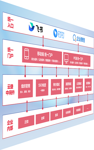 对协作平台提供支持服务,,,支持企业应用与协作平台对接,,,包含组织同步、、、消息集成、、、、待办集成等。。。。支持目前主流的协作平台:钉钉、、企微和飞书。。。。